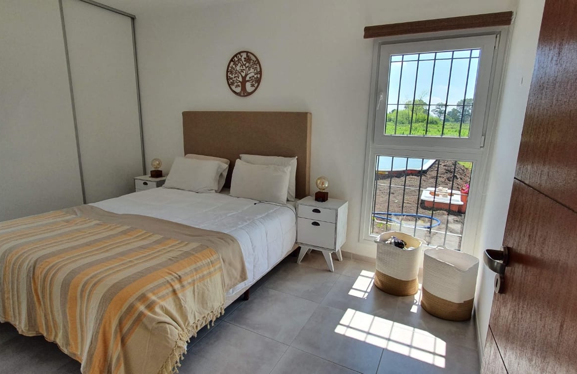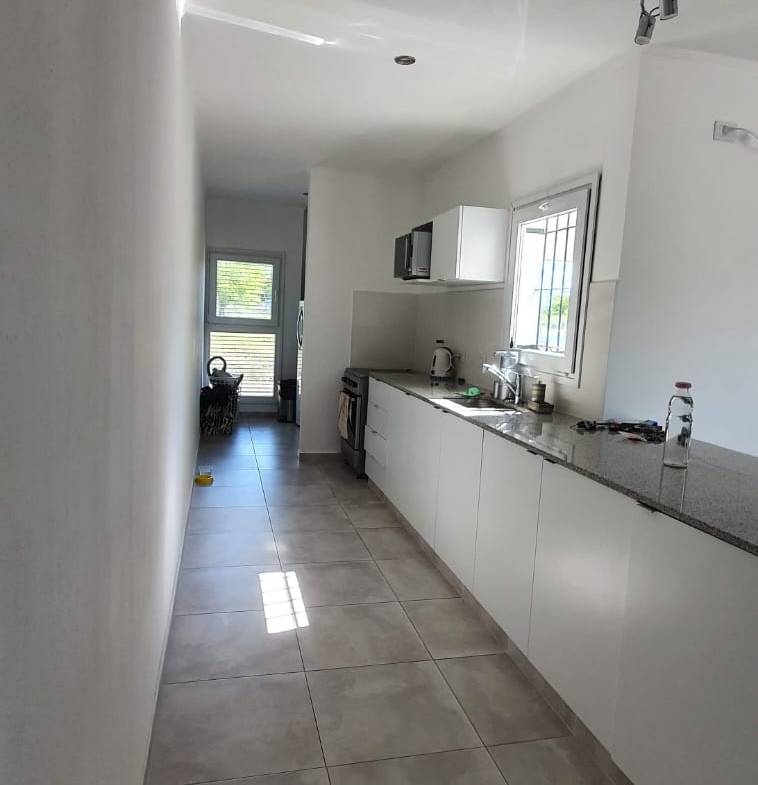 Casa ubicada en 90 y 147 (barrio latitud 34) con cochera cubierta para dos autos, living comedor, parrilla cubierta, cocina con mueble bajo y sobre mesada , lavadero, dos dormitorios, baño completo toilette. Hermoso patio con cuarto de guardado, pileta zona muy tranquila.