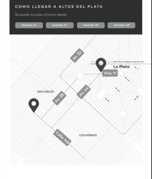 Barrio cerrado en 34 y 149 con acceso facil a La Plata! Lotes en venta desde 250 a 900 metros. Parte del complejo ya esta consolidado. Cuenta con muy buena iluminacion, seguridad privada, gimnasio, parrilla, piscina, cancha de futbol y salon para comer. Con posibilidad de financiacion! Valores desde 26500 dolares. Cualquier consulta al privado.